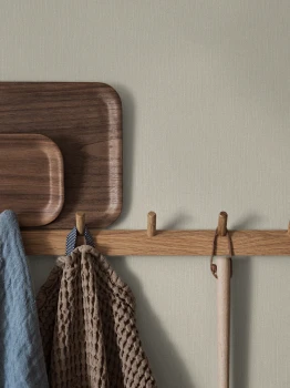 Tapete mit einem feinen Stoffeffekt in skandinavischen Beigetönen.