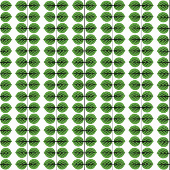 Vliestapete mit stilisierten Blättern auf weißem Hintergrund.