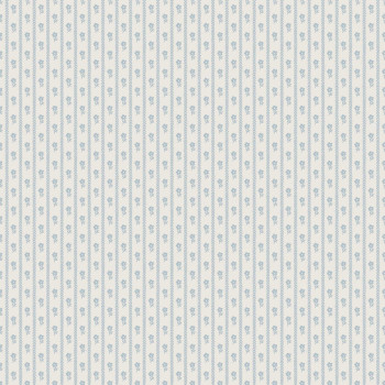 Tapete mit cremeweißem Hintergrund, blaue Rankenstreifen mit Blümchen.