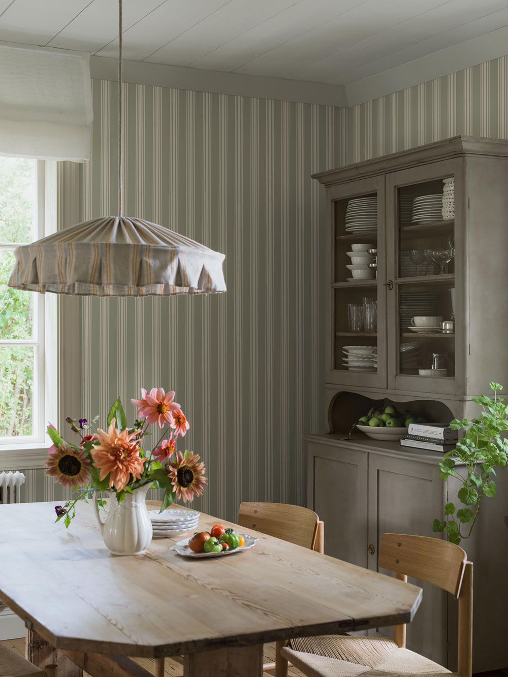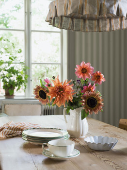 Die Tapetenkollektion Österlen bringt die Leichtigkeit und Ruhe des schwedischen Sommers in Ihr Zuhause. Handgemalte Blumen, feine Streifen und weitere Muster in zarten Pudertönen schaffen eine natürliche, sanfte Ausstrahlung. Ideal für das Ferienhaus, das Mädchenzimmer, den Flur oder das Wohnzimmer – überall dort, wo eine ruhige und freundliche Atmosphäre entstehen soll.