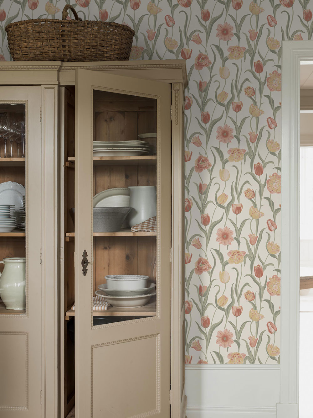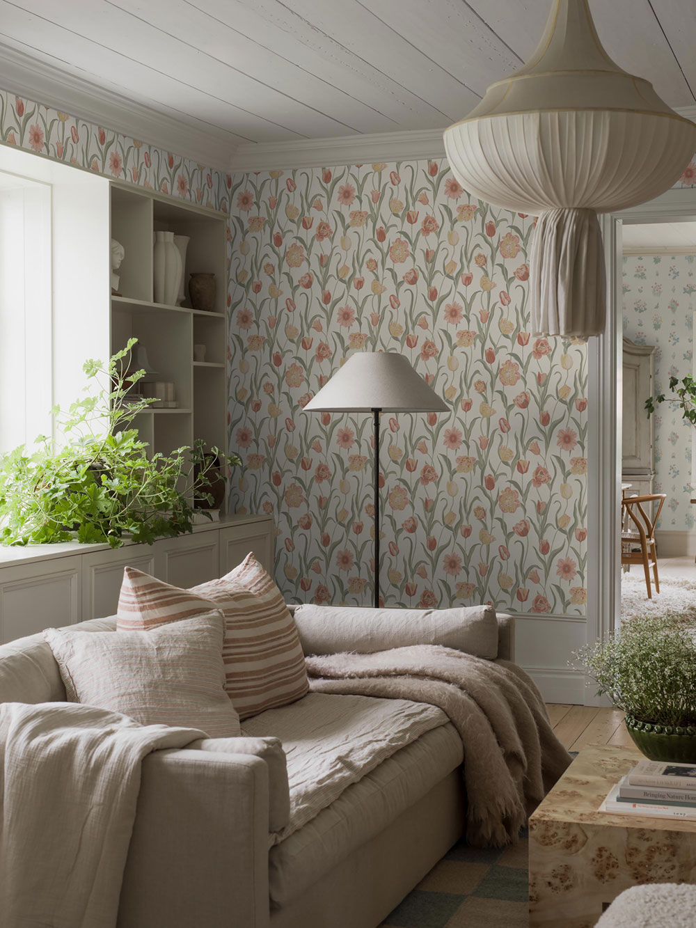 Die Tapetenkollektion Österlen bringt die Leichtigkeit und Ruhe des schwedischen Sommers in Ihr Zuhause. Handgemalte Blumen, feine Streifen und weitere Muster in zarten Pudertönen schaffen eine natürliche, sanfte Ausstrahlung. Ideal für das Ferienhaus, das Mädchenzimmer, den Flur oder das Wohnzimmer – überall dort, wo eine ruhige und freundliche Atmosphäre entstehen soll.