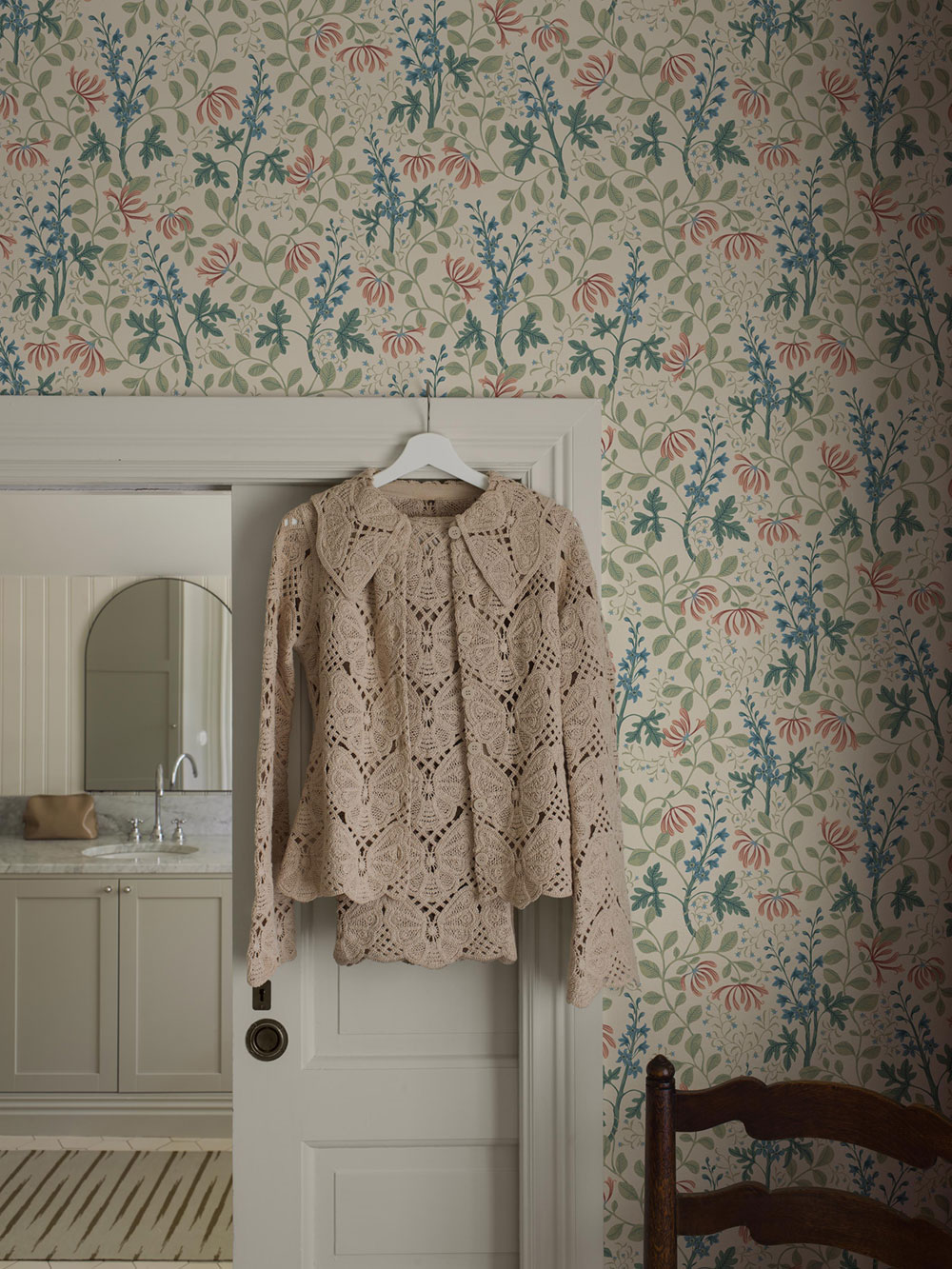 Die Tapetenkollektion Österlen bringt die Leichtigkeit und Ruhe des schwedischen Sommers in Ihr Zuhause. Handgemalte Blumen, feine Streifen und weitere Muster in zarten Pudertönen schaffen eine natürliche, sanfte Ausstrahlung. Ideal für das Ferienhaus, das Mädchenzimmer, den Flur oder das Wohnzimmer – überall dort, wo eine ruhige und freundliche Atmosphäre entstehen soll.