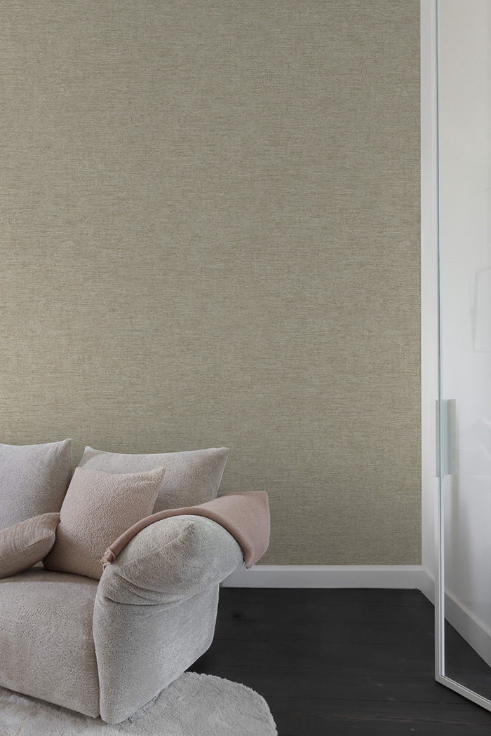Vliestapete mit Vinyloberfläche, in beigen Farbtönen.