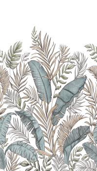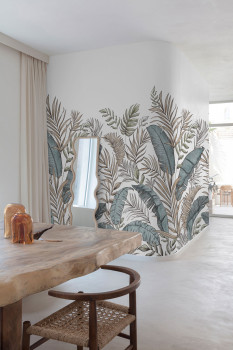 Vliesbildtapete mit Vinyloberfläche, Motiv tropische Blätter.