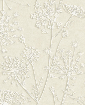 Tapete mit Muster aus blühenden Wiesengräsern in Creme- und Weißtönen – plastische Textur.