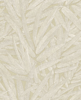 Tapete mit Blättermuster in Creme- und Beigetönen, leicht plastischer Hintergrund.