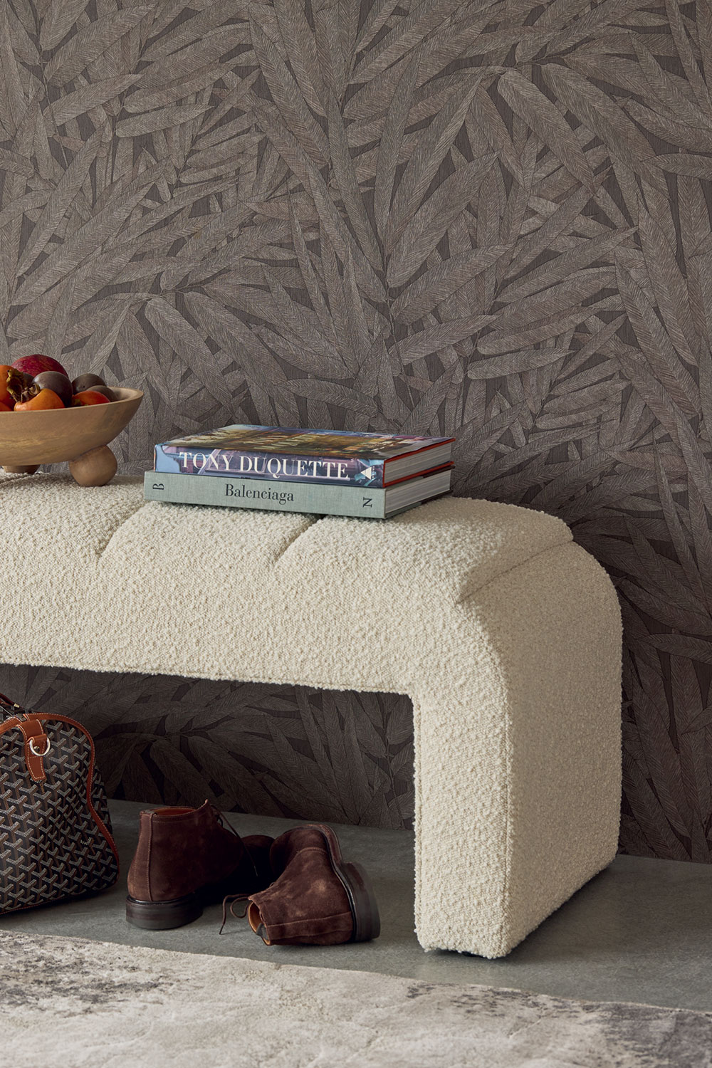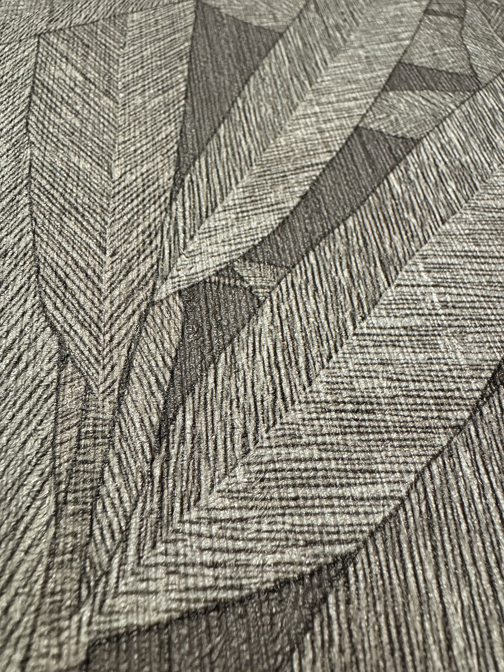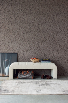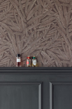 Tapete mit Blättermuster in Dunkelbraun, fein strukturierte Oberfläche.