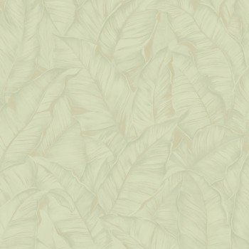 Luxus-Tapete mit Vinyloberfläche, plastische geprägte Blätter in Grüntönen, stellenweise mit zartem Halbschimmer.
