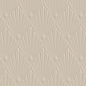 Luxus-Tapete mit Vinyloberfläche, geometrisches Muster im Art-Déco-Stil, halbglänzende Braun-Beige-Nuancen, Schattierung erzeugt einen räumlichen Effekt.
