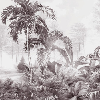 Luxus-Bildtapete mit Vinyloberfläche, Palmenmotiv in Grau- und Schwarztönen.