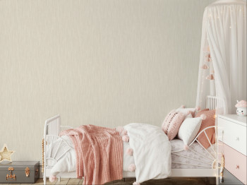 Vliestapete mit Vinyloberfläche, seidenglänzende Creme-Beige-Töne, Design erinnert an groben luxuriösen Stoff.