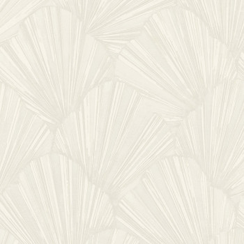 Vliestapete mit Vinyloberfläche, seidenglänzende Cremetöne mit perlmuttartigen Akzenten, plastisches Fächermuster.