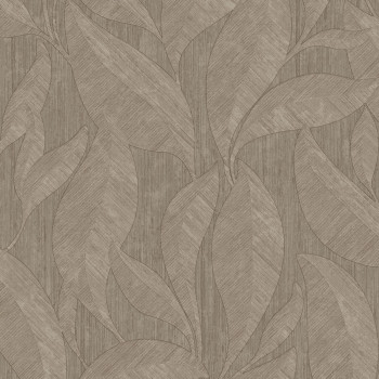 Vliestapete mit Vinyloberfläche, Brauntöne mit leichtem Seidenglanz, plastische stilisierte Blätter.