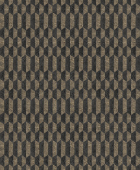 Vliestapete mit feinem plastischem geometrischem Muster in Schwarz und metallischem Gold.