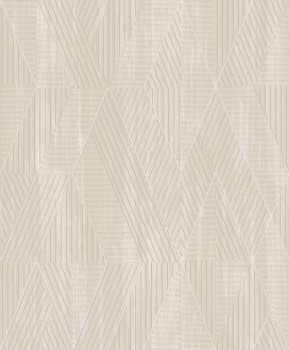 Vliestapete mit effektvollem geometrischem Muster in Grau-Beige-Tönen, feine Struktur, halbmatter Vintage-Effekt.