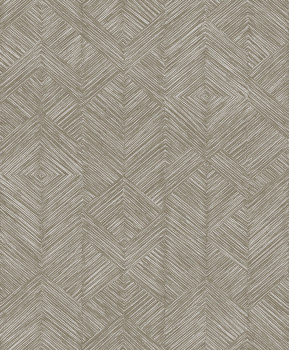 Vliestapete mit plastischen Linien, die geometrische Muster bilden, in Beige-, Braun- und halbmatt graubeigen Farbtönen.