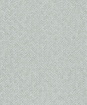 Vliestapete mit dezent plastischem Muster eines geflochtenen Teppichs in Hellgrün.