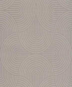 Vliestapete mit grafischem Bogenmuster in Sand- und Graubeige-Tönen mit leichtem Glanz, strukturierte Oberfläche erinnert an Stoff.