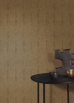 Vliestapete, plastische Textur in Brauntönen mit glänzenden Punkten.