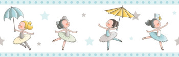 Verändern Sie die langweiligen Wände und schaffen Sie ein gemütliches Zimmer, in dem sich Ihre Kinder wohlfühlen werden. Ballerina-Motive auf einer blauen selbstklebenden Tapetenbordüre. Kombinieren Sie es mit passenden Tapeten und Stoffen.