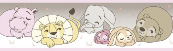 Verändern Sie die langweiligen Wände und schaffen Sie ein gemütliches Zimmer, in dem sich Ihre Kinder wohlfühlen werden. Ruhende Tiere auf einer selbstklebenden Kindertapetenbordüre. Kombinieren Sie es mit passenden Tapeten und Stoffen.
