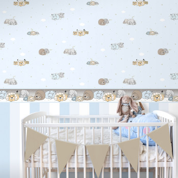 Verändern Sie die langweiligen Wände und schaffen Sie ein gemütliches Zimmer, in dem sich Ihre Kinder wohlfühlen werden. Ruhende Tiere auf einer selbstklebenden Kindertapetenbordüre. Kombinieren Sie es mit passenden Tapeten und Stoffen.