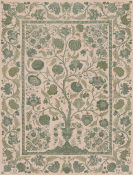 Vlies-Bildtapete mit Motiv des blühenden „Baums des Lebens“, in Grün- und Beigetönen.
