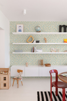 Neben gemusterten Tapeten bietet die Kollektion auch einfarbige Varianten mit Leinenoptik, die sich wunderbar mit den Motiven kombinieren lassen und das Kinderzimmer bis ins letzte Detail abrunden.
