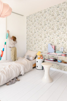 Neben gemusterten Tapeten bietet die Kollektion auch einfarbige Varianten mit Leinenoptik, die sich wunderbar mit den Motiven kombinieren lassen und das Kinderzimmer bis ins letzte Detail abrunden.