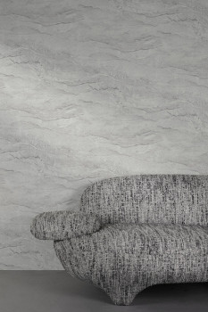 Vliestapete mit Vinyloberfläche, Marmoroptik in Grautönen, feine Körnung.