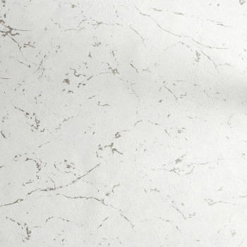 Vliestapete mit Vinyloberfläche, Putzhintergrund in Weiß- / Elfenbeintönen, metallisch hellgoldene Marmorierung.
