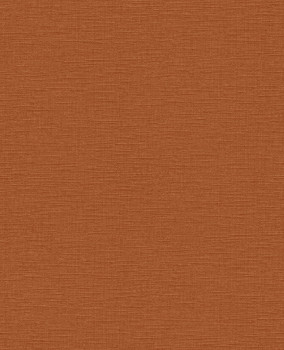 Vliestapete mit Vinyloberfläche, terrakottafarben, grobe Stoffstruktur.