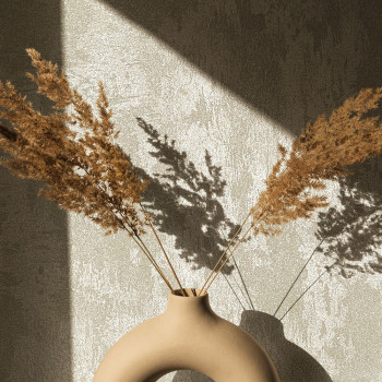 Vliestapete mit Vinyloberfläche, Dekor einer braun-grauen Putzoptik, matt und mit leichtem Glanz, feine Struktur.