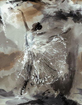 Vlies-Bildtapete mit Vinyloberfläche, Stoffoptik, Motiv einer tanzenden Ballerina.
