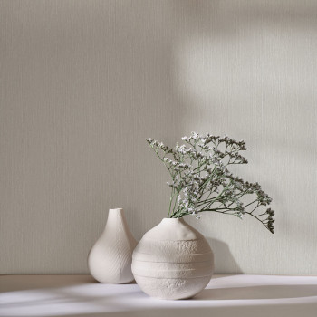 Vliestapete mit Vinyloberfläche, vertikale Struktur, die Holzoptik in Grau-Creme-Tönen nachbildet.