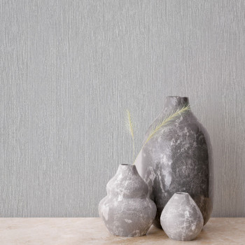Vliestapete mit Vinyloberfläche, vertikale Struktur, die Holzoptik in Grautönen nachbildet.