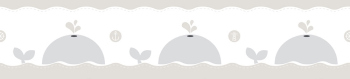 Papier, selbstklebende Bordüre für Kinder mit Motiven von Walen, dem Meer, Leuchttürmen, Rudern und Ankern.