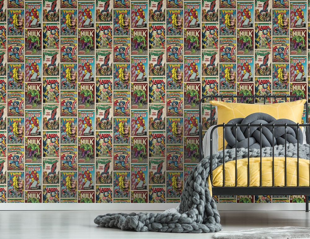 Tapete mit Marvel-Comic-Helden.