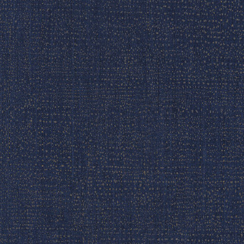 Dunkelblaue Vliestapete mit Vinyloberfläche. Feine Streifenstruktur, unregelmäßige Goldpunkte.