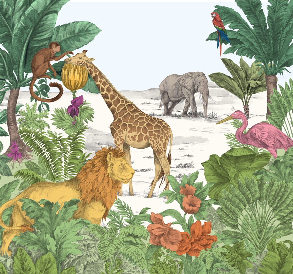 Kinder-Fototapete mit wilden Tieren - 6 Stück.