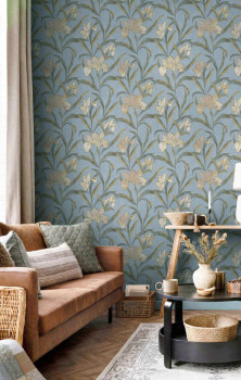 Tapete, blau, Blumen, 2024, Rio, Parato by Cristiana Masi