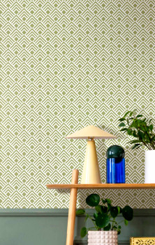 Geometrische Tapete, grün, 2050, Rio, Parato by Cristiana Masi