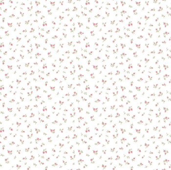 Luxuriöse Vliestapete mit Vinyloberfläche, cremefarbener Hintergrund, kleine Blümchen in Grün- und Rottönen.