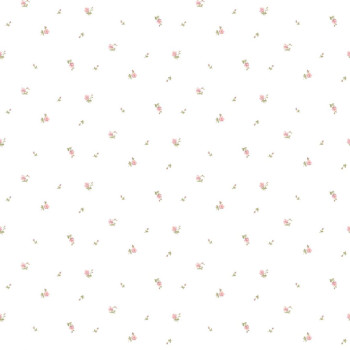 Luxuriöse Vliestapete mit Vinyloberfläche, cremefarbener Hintergrund, kleine Blümchen in Grün- und Rosatönen.