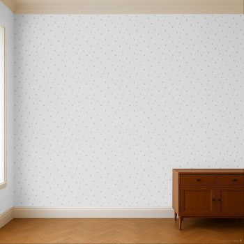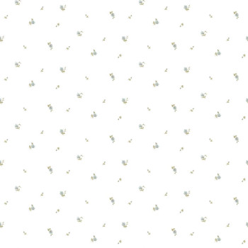 Luxuriöse Vliestapete mit Vinyloberfläche, cremefarbener Hintergrund, kleine Blümchen in Grün- und Blautönen.