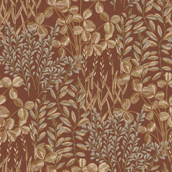 Tapete, braun-rot, Blätter und Gras, A78902, Inia, Grandeco