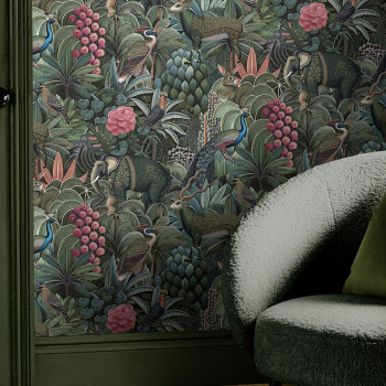 Tapete, grün-blau, Dschungel, Tiere, 142317, Jaipur, Graham Brown Premium