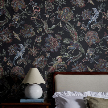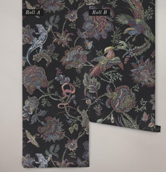 Tapete, schwarz, Blumen, Tiere, 143235, Jaipur, Graham Brown Premium