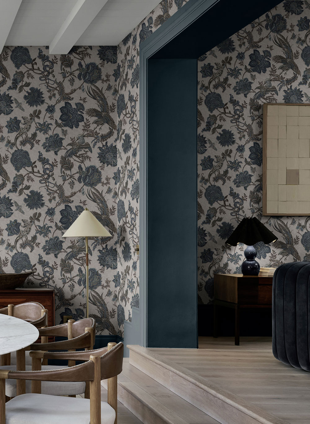 In der Kollektion finden Sie Blumen, exotische Tiere und einen bezaubernden Dschungel. Die Muster sind wunderschön detailliert, voller feiner Linien und satter Farben, sodass sie oft eher wie ein Gemälde als wie eine klassische Tapete wirken. Auch großformatige Bildtapeten fehlen nicht, die einen Wow-Effekt erzeugen und zum Herzstück des Raumes werden.