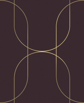 Vliestapete, matt, feinfaserige Struktur, Farbe: Violett/Pflaume, halbglänzende goldene Linien.